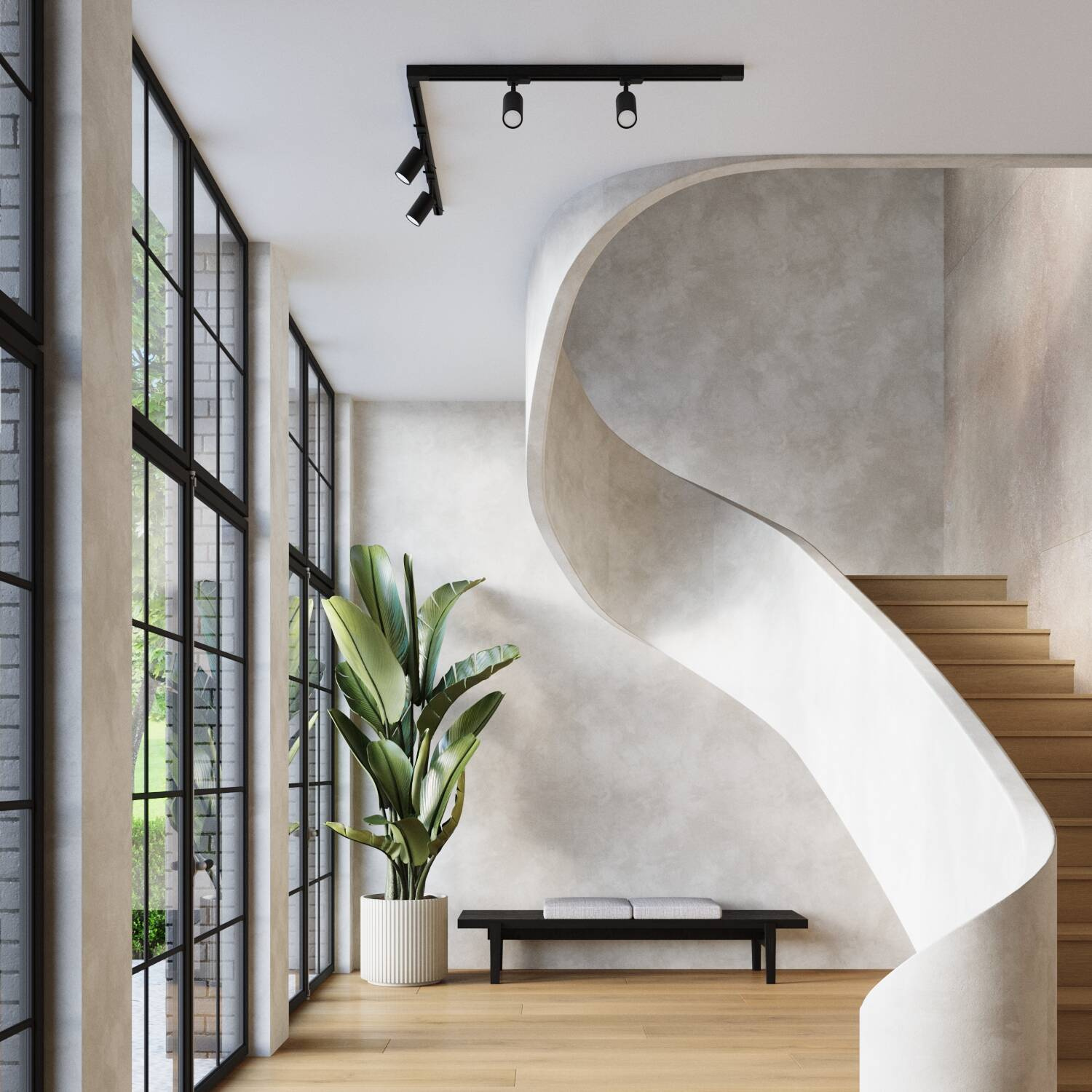 Prosta, minimalistyczna forma lampy na szynoprzewodach doskonale komponuje się z nowoczesnymi, industrialnymi, a także klasycznymi wnętrzami. Jej czarna kolorystyka i smukła sylwetka dodają elegancji i wyrafinowania, sprawiając, że staje się ona stylowym elementem dekoracyjnym.