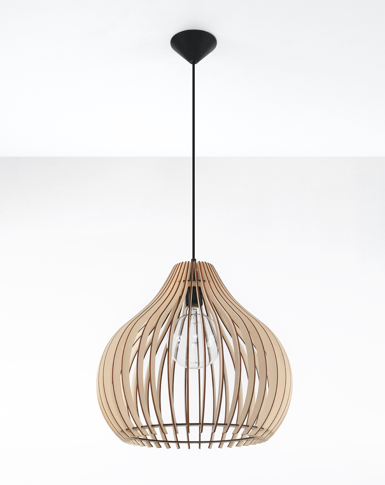 Lampa wisząca APRILLA sprawi, że każde pomieszczenie zostanie oświetlone przytulnym i ciepłym światłem. Spod drewnianego abażuru wydobywa się światło, które tworzy wyjątkowe efekty na suficie i ścianie. Daj się jej oczarować i odmień swój dom na lepsze.