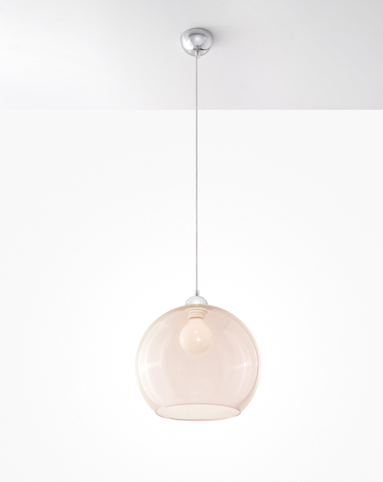 Klosz o kształcie kuli jest wykonany ze szkła, więc idealnie rozprasza światło w pomieszczeniu. W rezultacie dociera ono równomiernie we wszystkie zakątki i estetycznie się prezentuje.