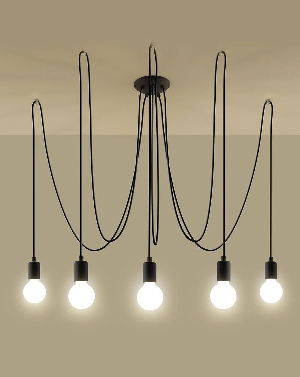 Lampa wisząca EDISON 5 czarny + 5x Żarówka LED E27 3000K Ciepła 7,5W 620lm