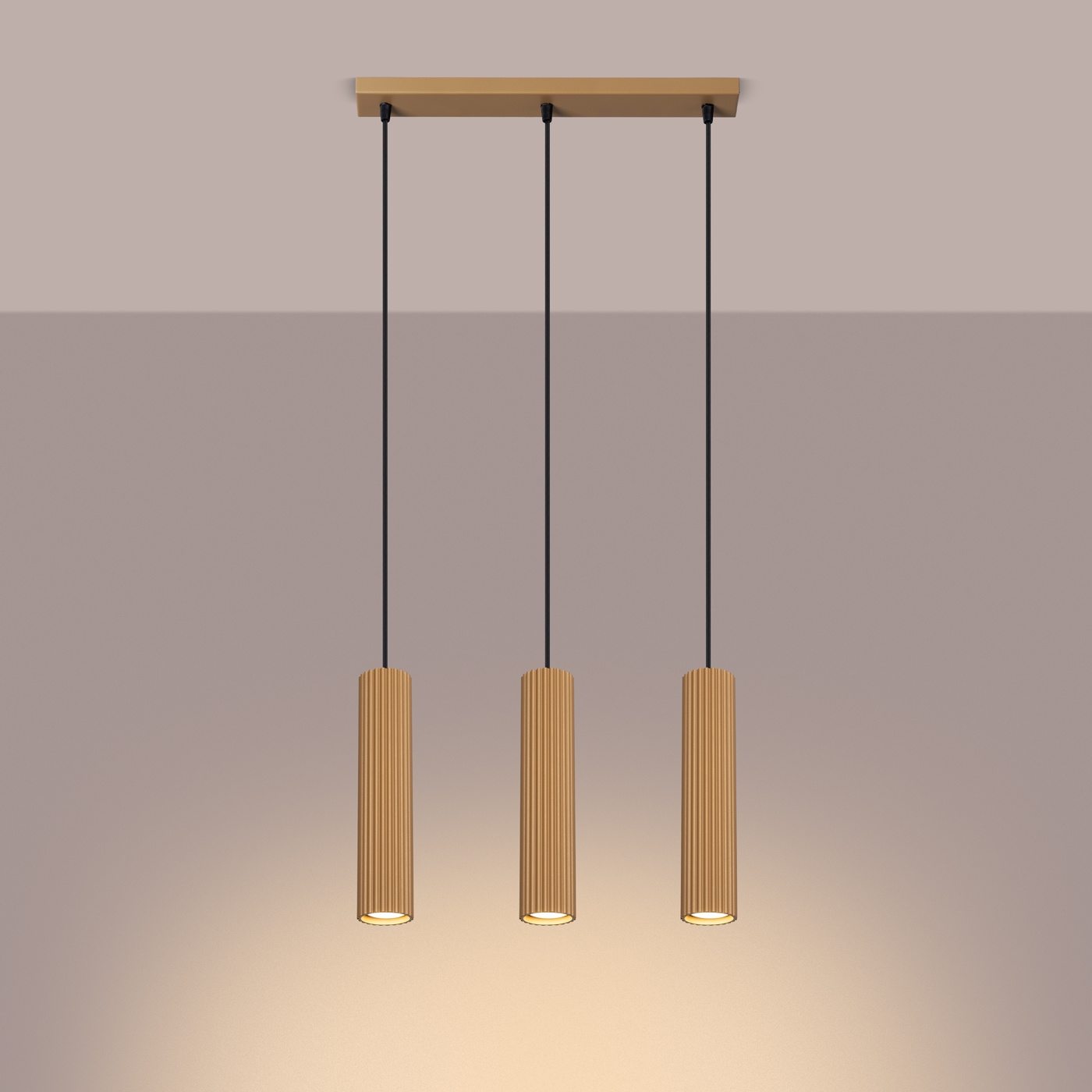 Lampa wisząca KARBON 3L złoty + 3x Żarówka LED GU-10 4000K Zimna 7W 530lm