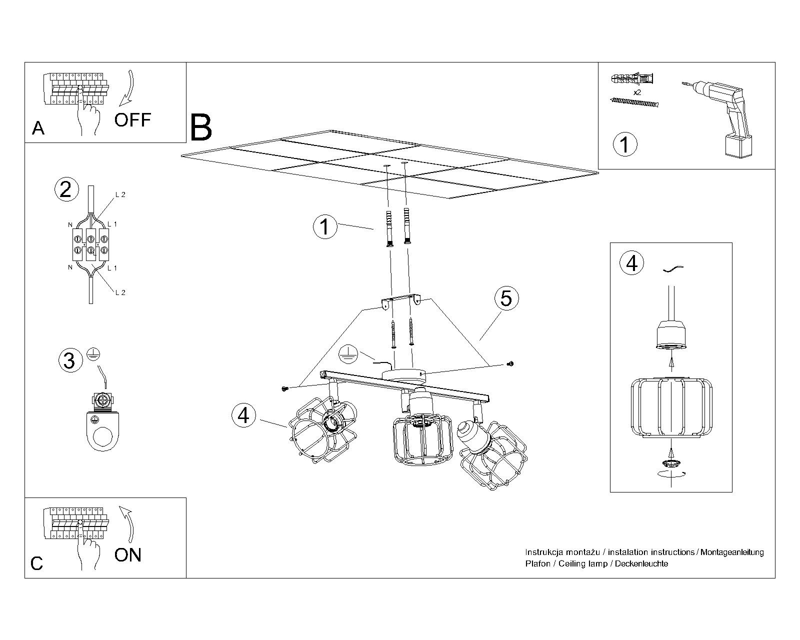 Plafon BELUCI 3 czarny + 3x Żarówka LED E14 4000K Zimna 7,5W 680lm