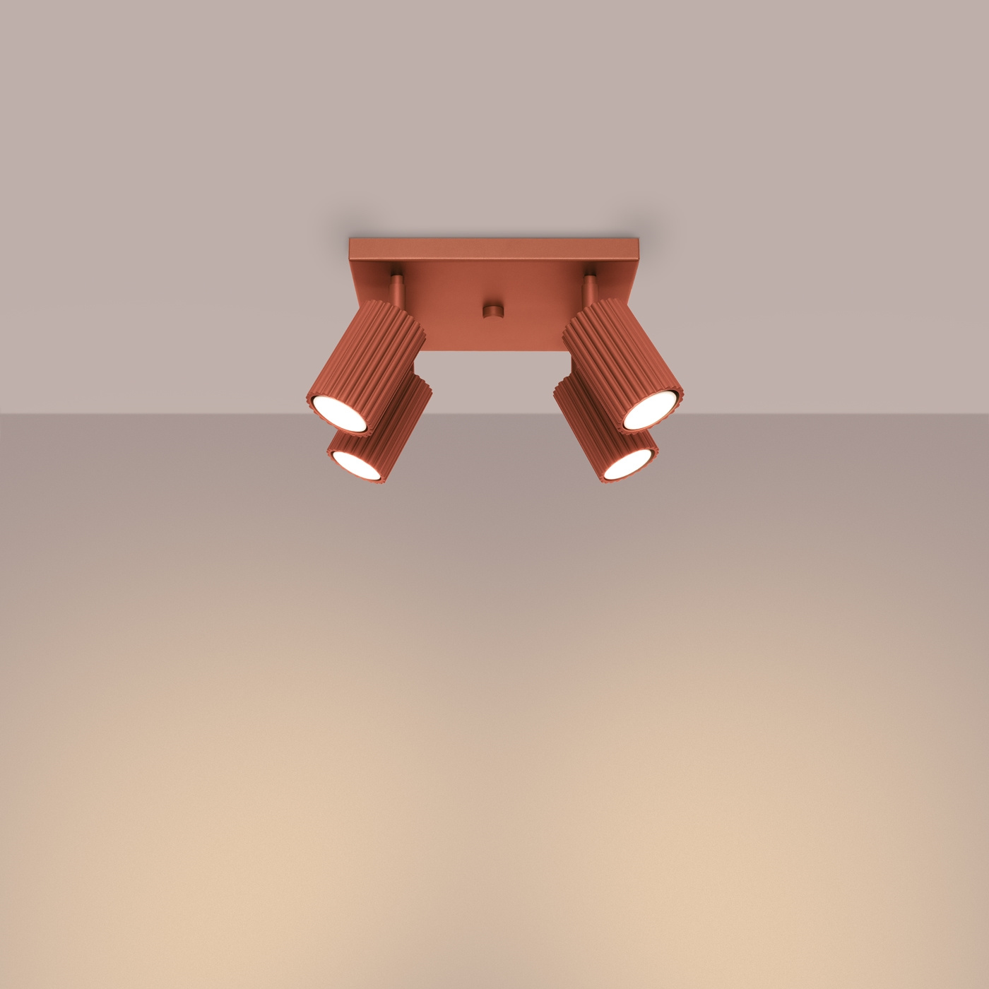 Plafon KARBON 4 ochra czerwona + 4x Żarówka LED GU-10 4000K Zimna 7W 530lm
