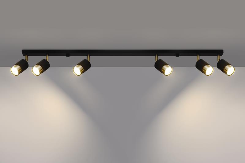 Plafon NERO 6 czarny/złoty + 6x Żarówka LED GU-10 4000K Zimna 7W 630lm