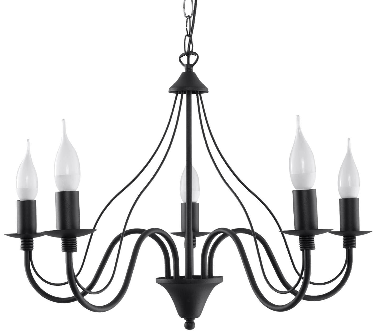 Żyrandol MINERWA 5 czarny + 5x Żarówka LED E14 3000K Ciepła 7,5W 620lm