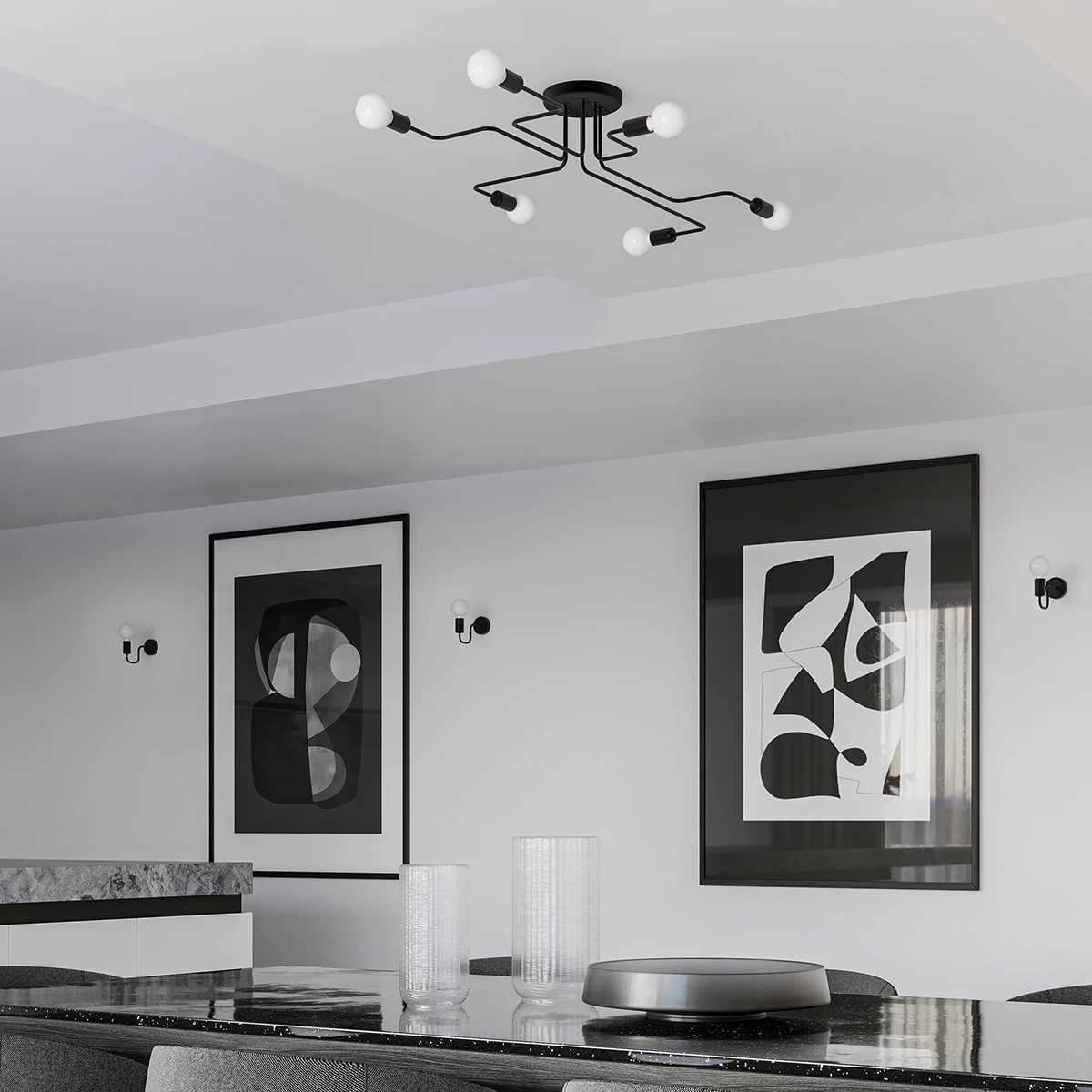 Lampa VECTOR zachwyca symetrią oraz uporządkowanym minimalizmem. Precyzyjnie uformowane ramiona i brak kloszy są ciekawym, przykuwającym uwagę połączeniem, które poza praktycznym zastosowaniem, może także z powodzeniem zdobić wnętrze.